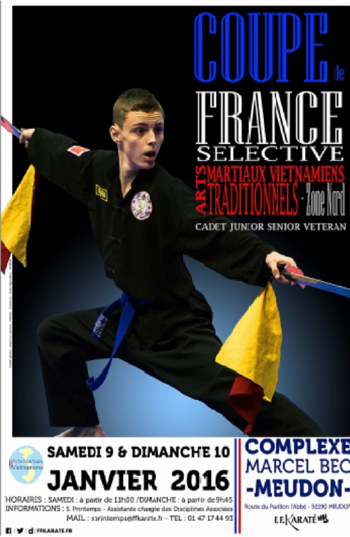 La Coupe de France Zone Nord ‘Technique’ et ‘Combat’ des Arts Martiaux Vietnamiens Traditionnels se déroulera les 09 et 10 Janvier 2016 prochains :