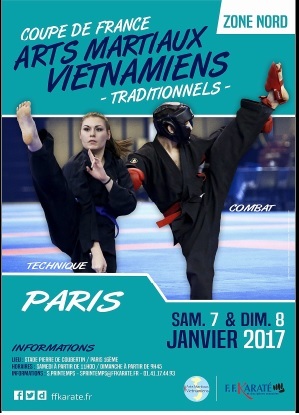 Les Sélections Zone Nord ‘TECHNIQUE’ et ‘COMBAT’ des Arts Martiaux Vietnamiens Traditionnels se dérouleront les 07 et 08 Janvier 2017 prochains :