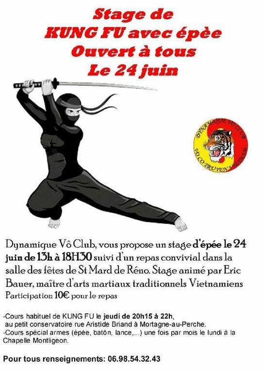 Ce stage sous la direction d'eric Bauer,est organsé par le Dynamic Vo Club et aura pour thème une leçon d'épée.