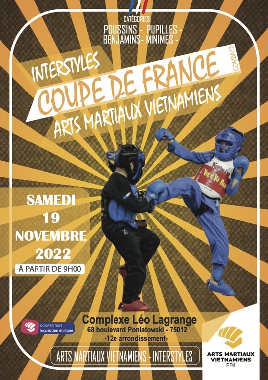 IMPORTANT : Cette compétition est organisée selon le règlement technique des Arts Martiaux Vietnamiens Traditionnels. Seuls les GANTS type « Mitaines » sont autorisés. Les Gants Fermés type boxe sont interdits